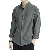 シャツ メンズ 7分袖 カジュアルシャツ スタンドカラー 無地 綿麻シャツ リネンシャツ シンプル 開襟シャツ 春 夏 XL:クリックでAmazon商品ページ